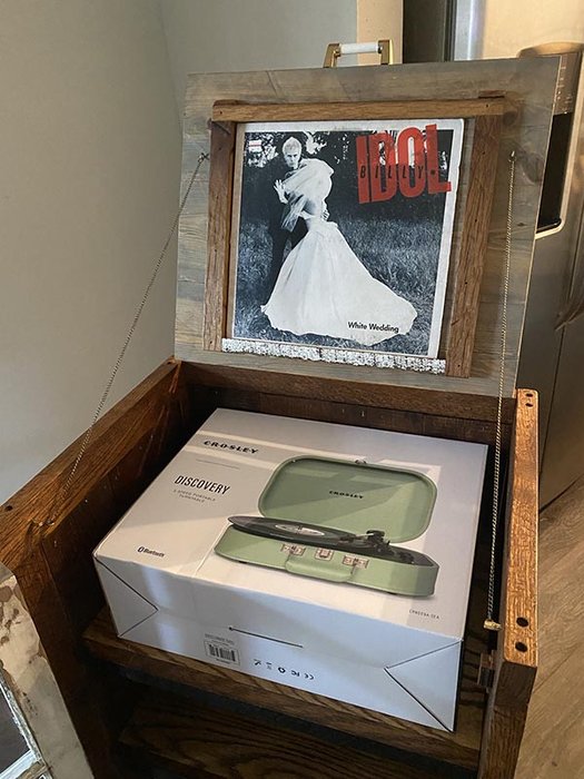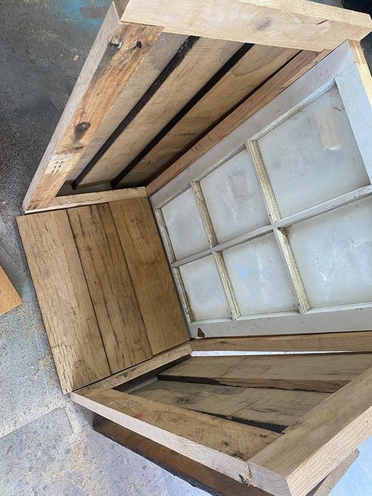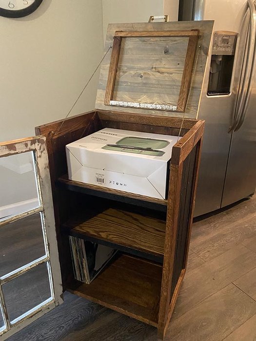 When my niece announced she was getting married the ideas on what to get/make for a gift started to flow. I landed on building a custom record player stand when I saw that she had a record player on her registry. I built this one from a reclaimed wood framed window and some scraps of barn wood from another project. The barn wood was oak and it was never painted, instead they had charred the outside surface to seal it. Not only did it look awesome, but it also had an excellent smoky smell.