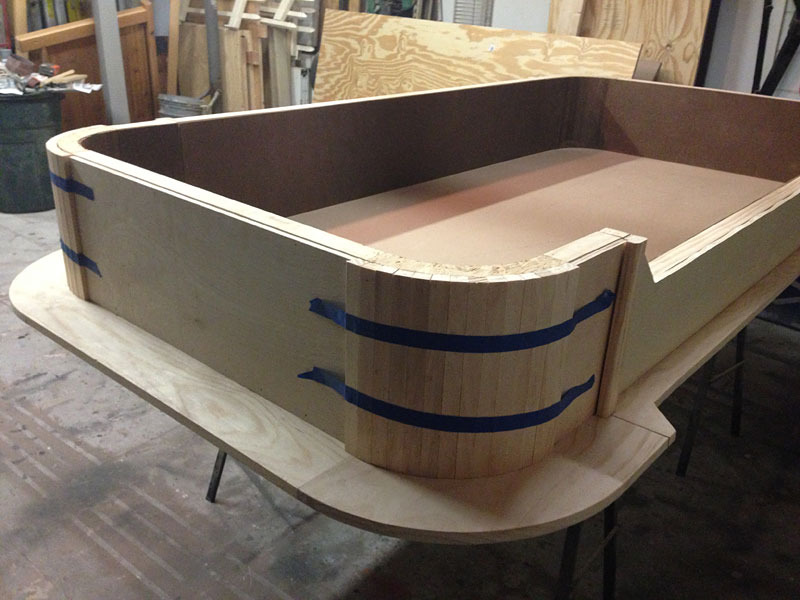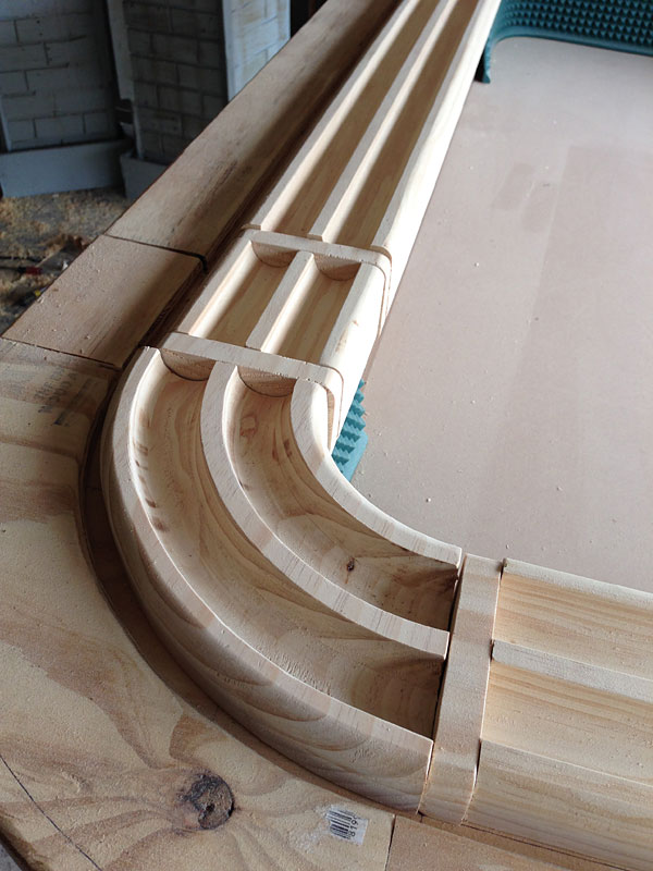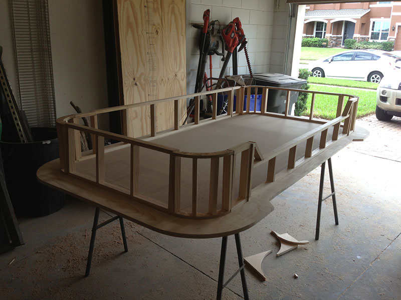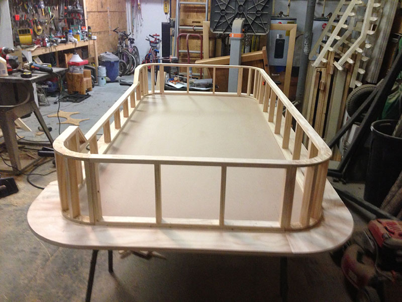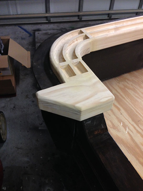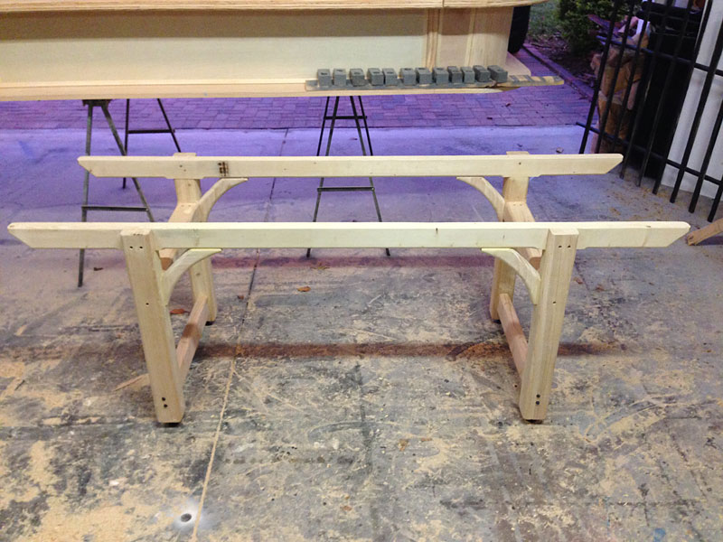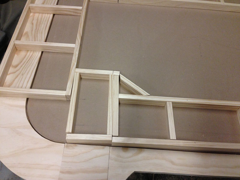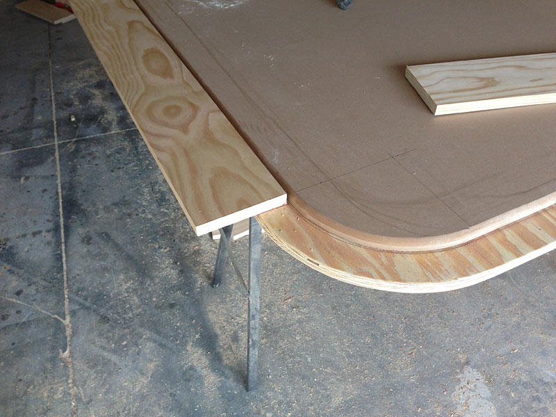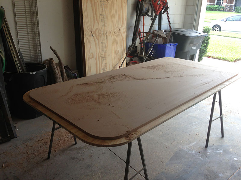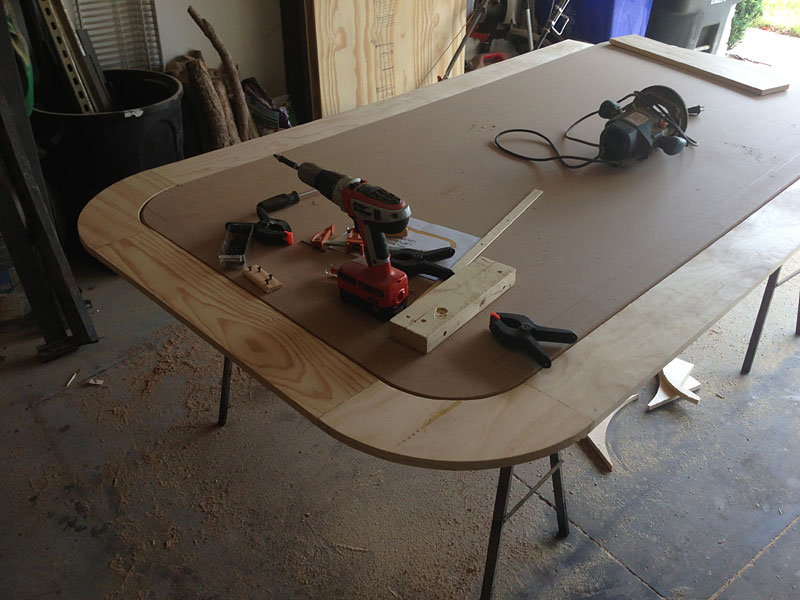 The most difficult part of this project was coming up with plans to do the build.  So few people have made one before so there wasn't a lot of references to go off of.  After spending nearly a month researching craps tables on-line we eventually made our own design for the table.  It started with the craps layout itself and using the dimensions from that the rest of the table dimensions were estimated.  From the estimates we built a 3D model for the final plan dimensions.