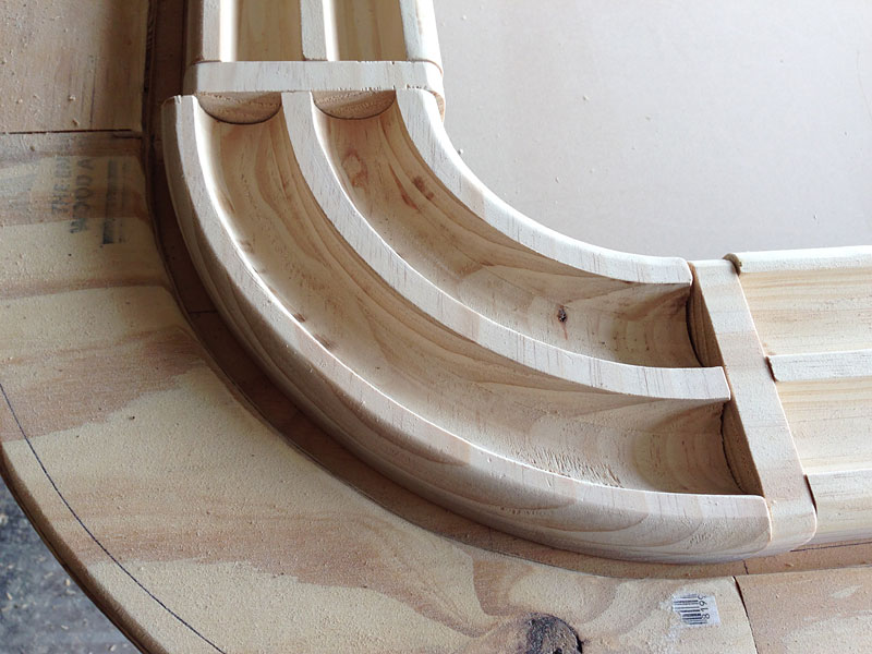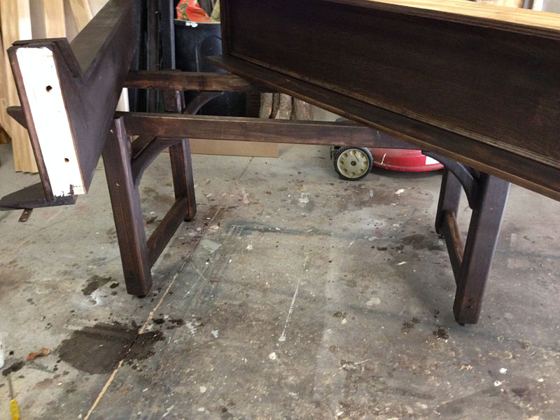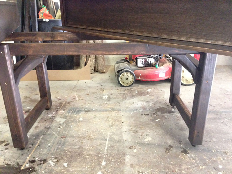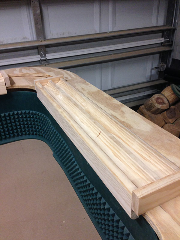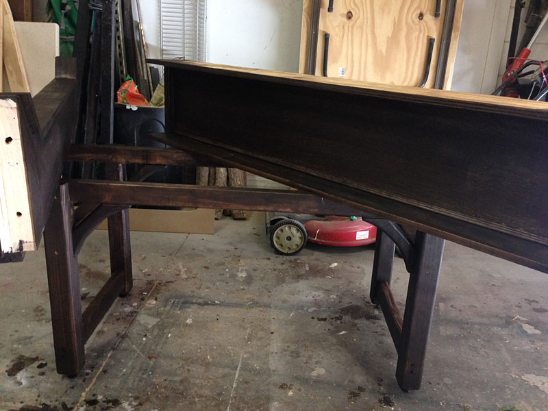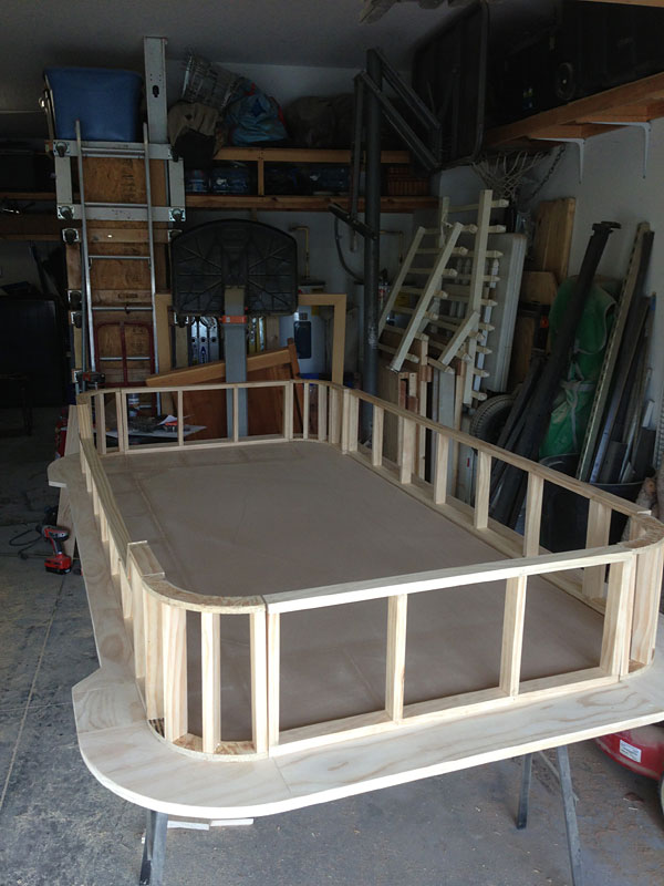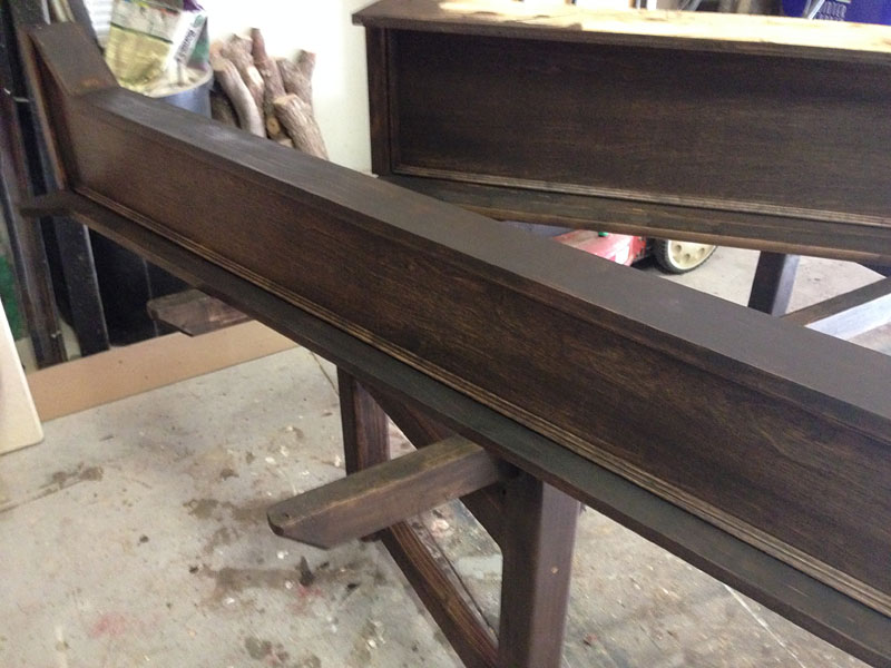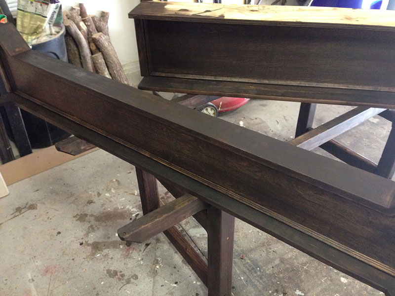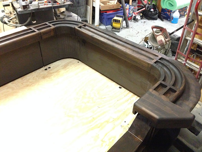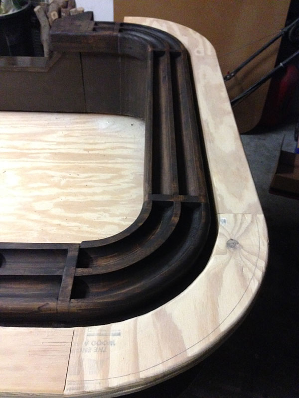 Since the table is so large we wanted to make sure that it could be moved and stored. Like many of the store bought tables this one was built in multiple sections that all fit together with pegs and a few screws.  It breaks down as follows: four walls, the layout board, the base board and then the legs which can also be broken down into 4 parts.