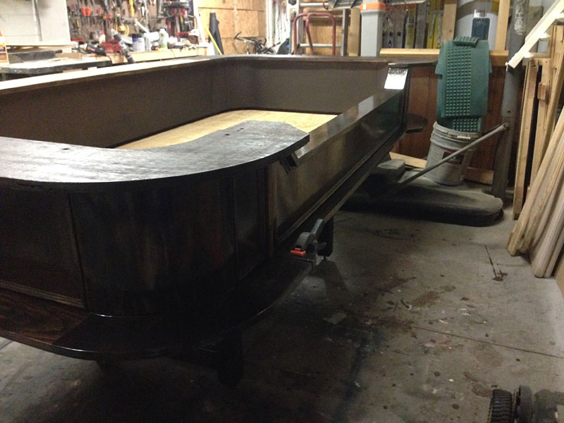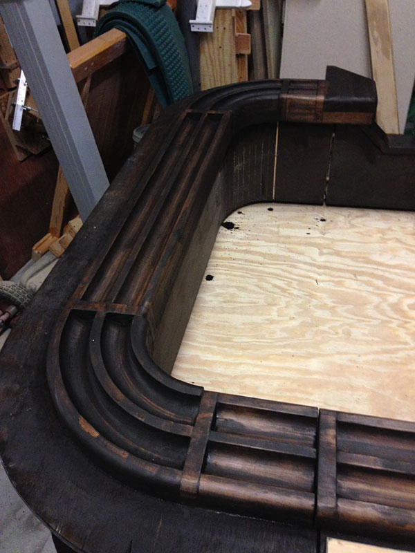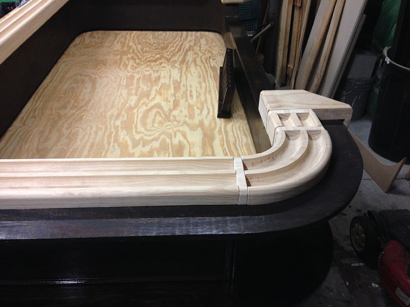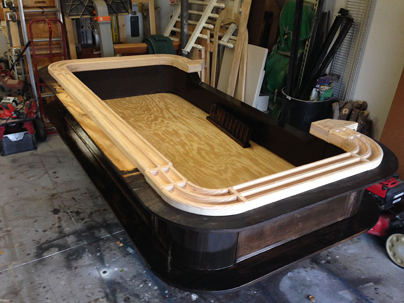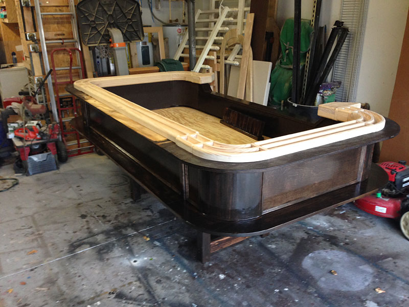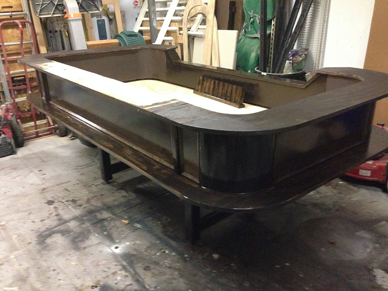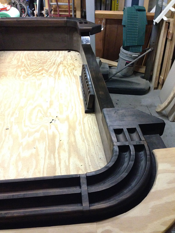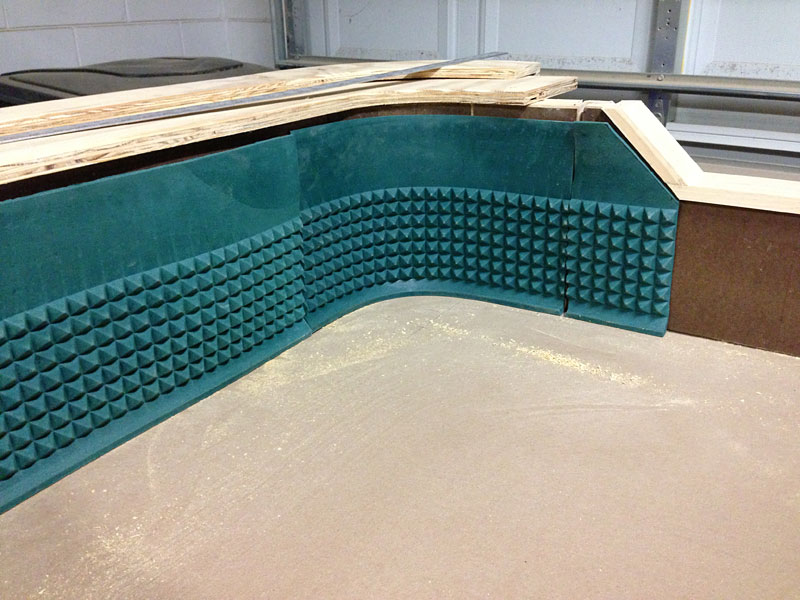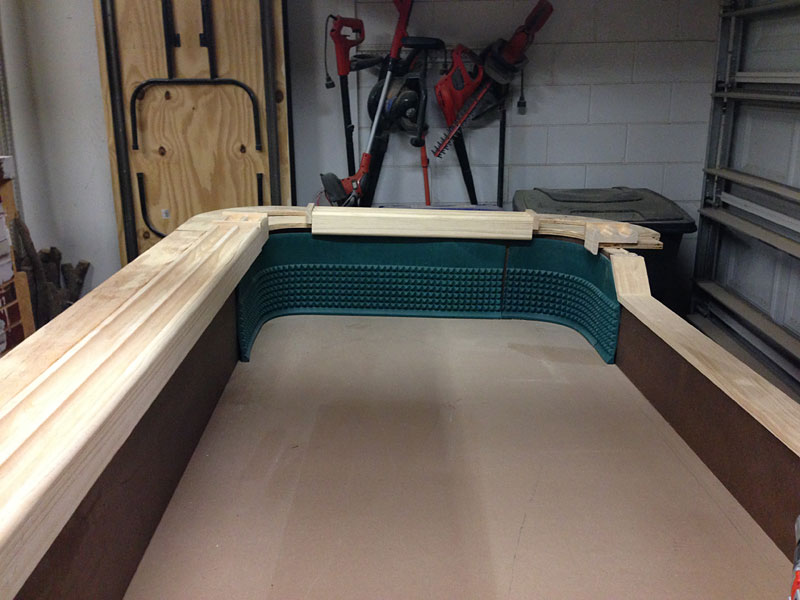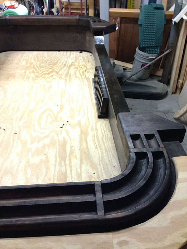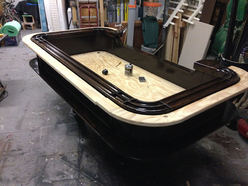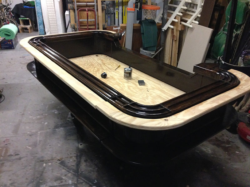 To keep it as authentic as possible pyramid shaped rubber bumpers were installed on the end walls and a mirror was placed on the longer length of the table.