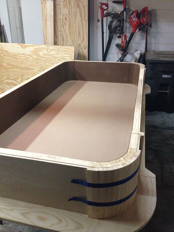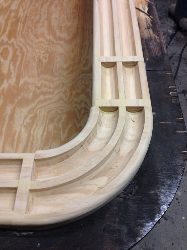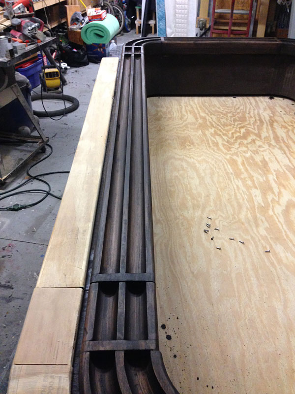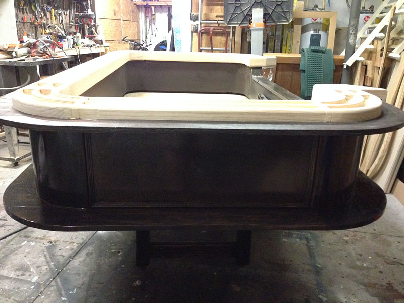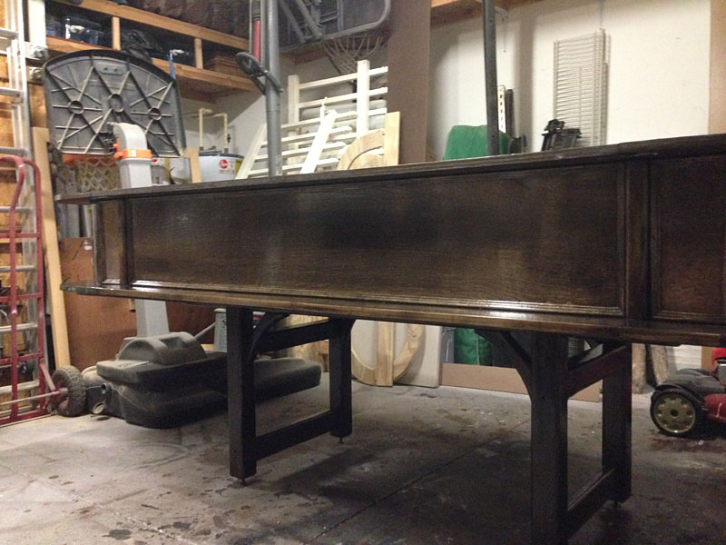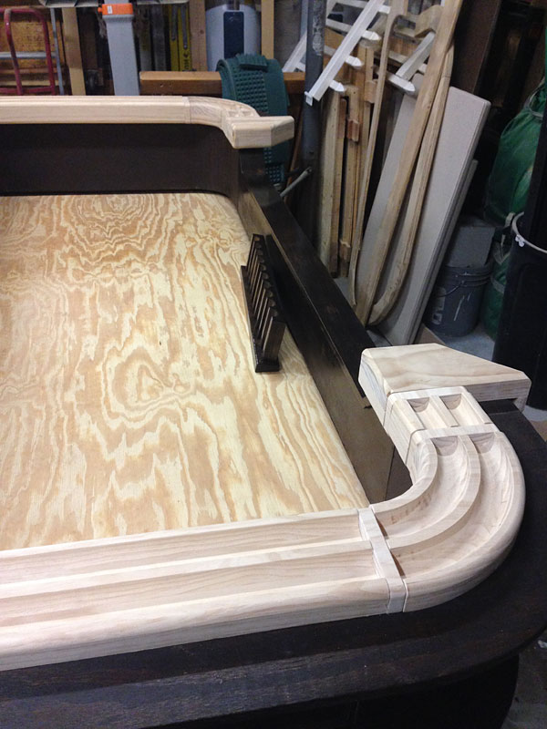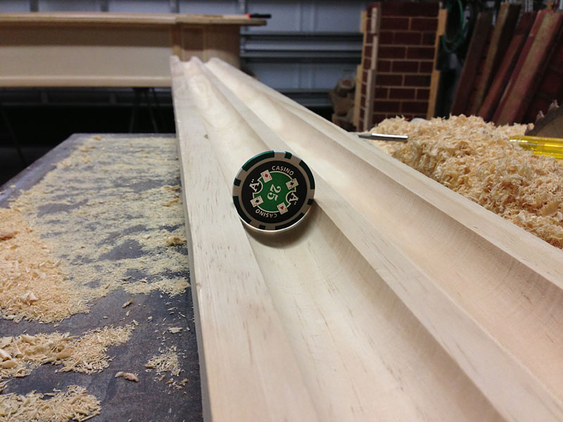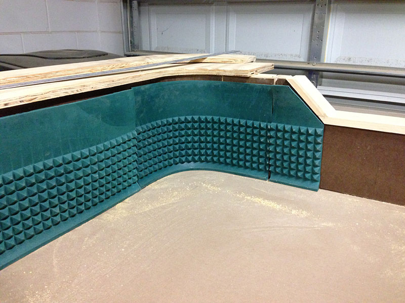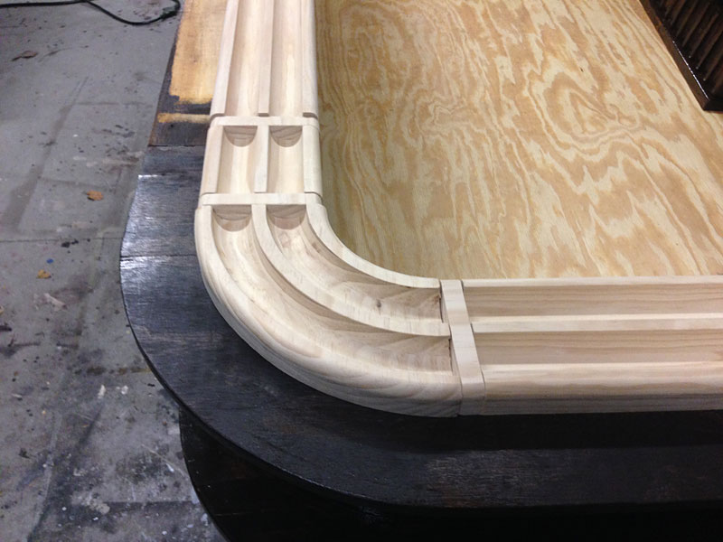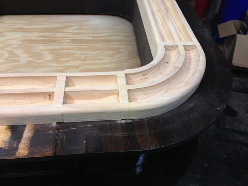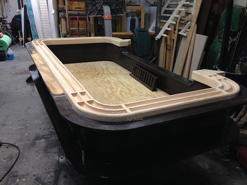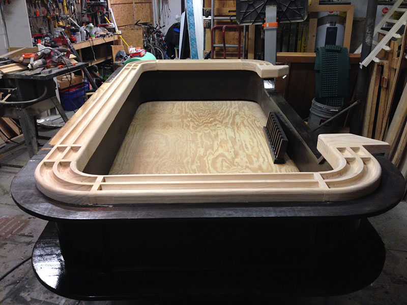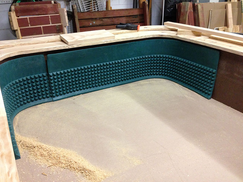 To keep it as authentic as possible pyramid shaped rubber bumpers were installed on the end walls and a mirror was placed on the longer length of the table.